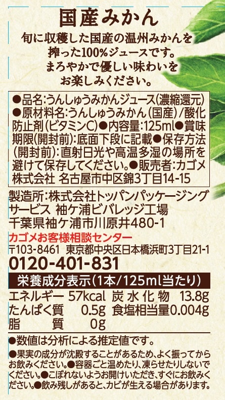 旬に収穫した国産の温州みかんを搾った100%ジュースです。