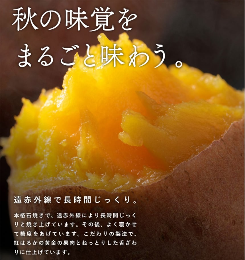 千葉県、茨城県を中心とした国産の紅はるかを低温の特殊製法でじっくり焼き上げ冷凍にしました。