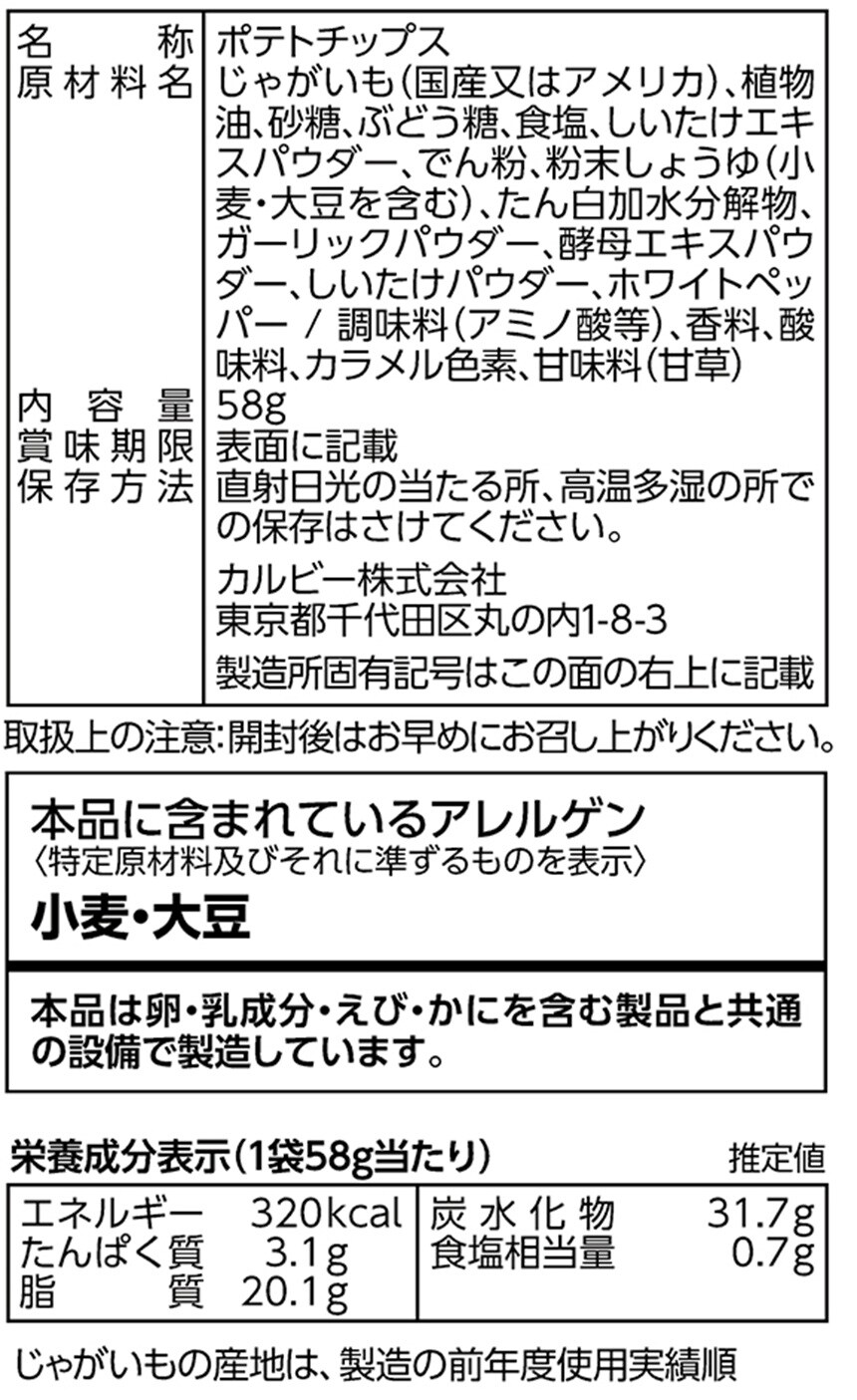 - カルビー ポテトチップス 素材のおいしさ しいたけ 58g