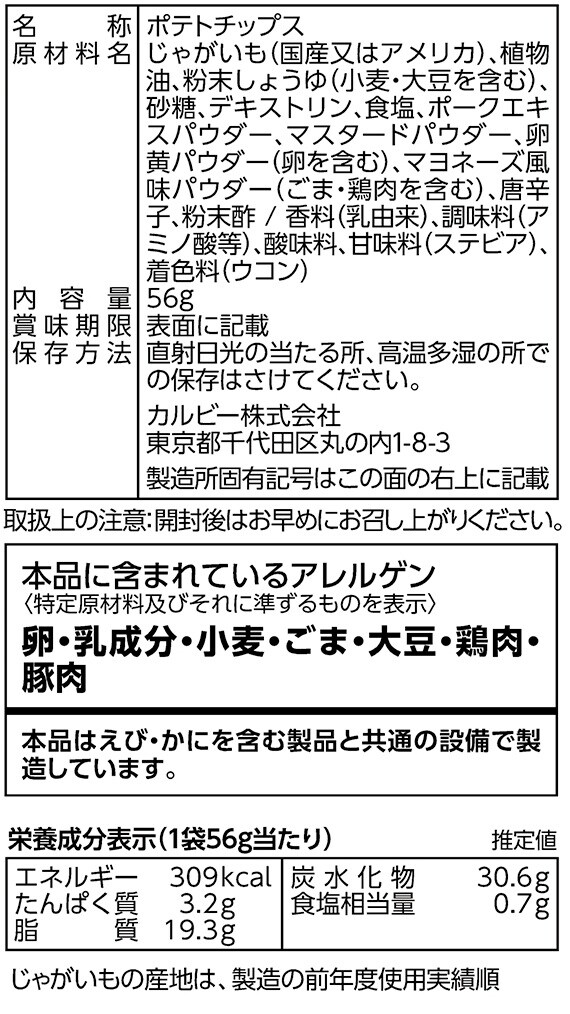 - カルビー ポテトチップスしょうゆWマヨ 56g