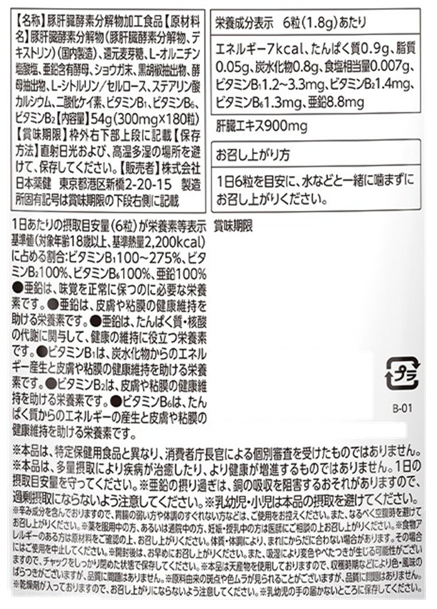 [計360日]日本薬健 レバタライズ 180粒(30日分)a×12個 | 肝臓エキス高配合。6粒あたり(1日摂取目安量)で、肝臓エキス900mgを補給することができます。