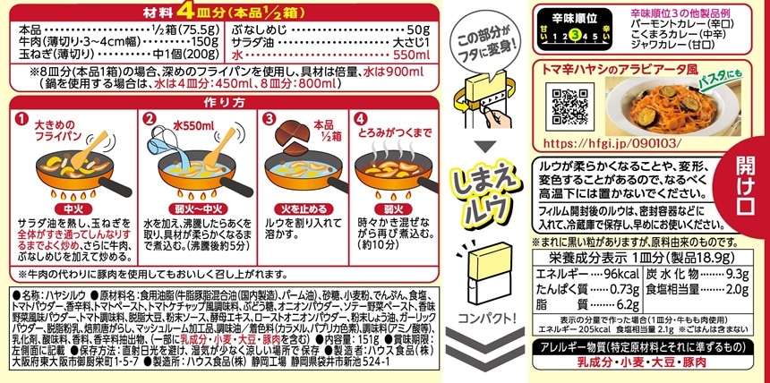 - 完熟トマトのハヤシライスソース トマ辛ハヤシ 151g