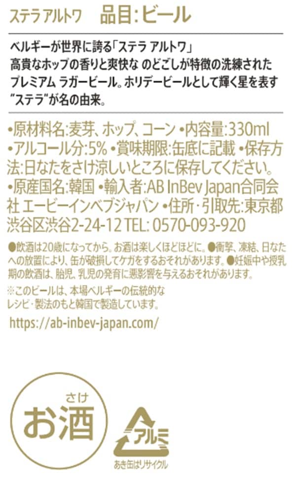 - ステラ・アルトワ 缶 ラガービール 330ml