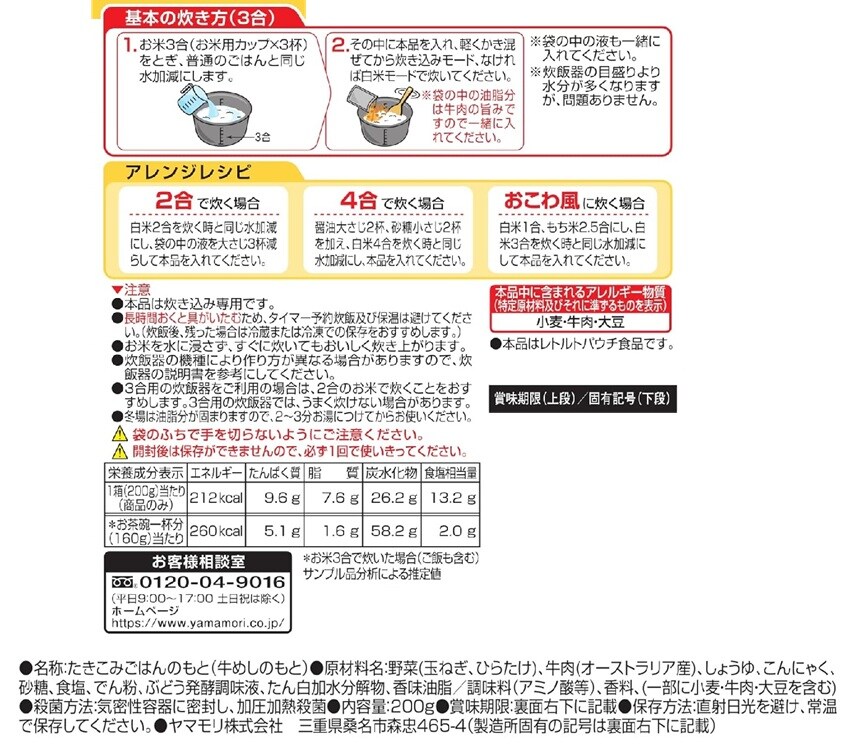 [10個]ヤマモリ 松屋監修 炊き込み牛めしの素 200g | 松屋の牛めしを炊き込みごはんに仕立てました