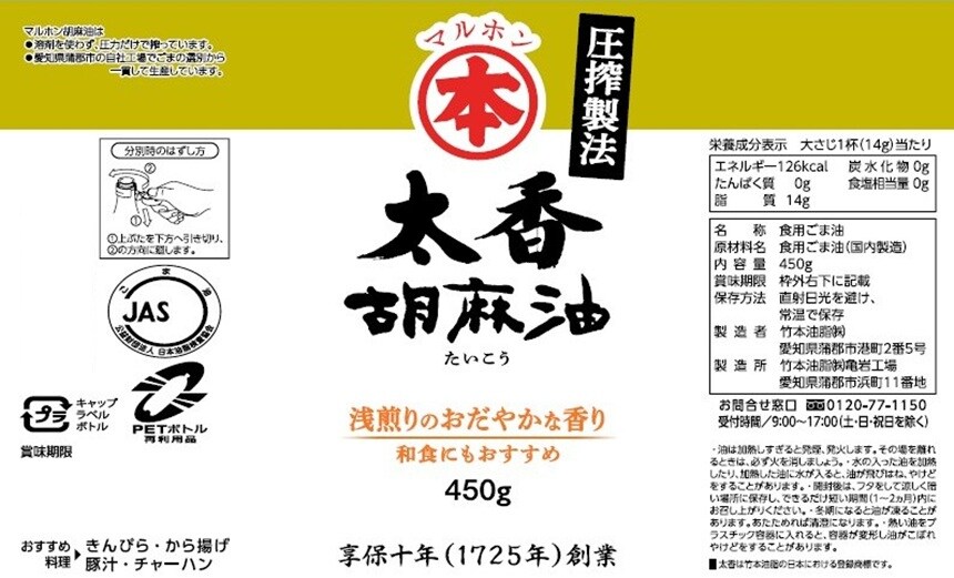 - マルホン 太香胡麻油 450g