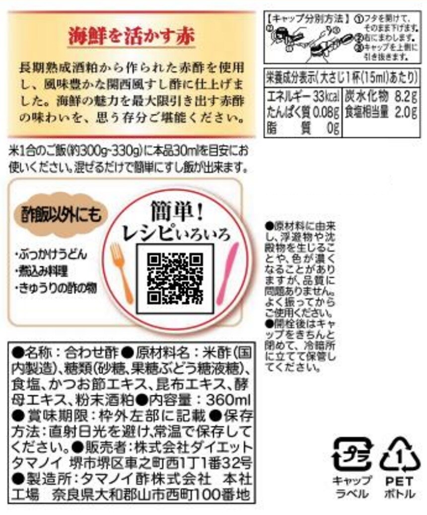[6本]タマノイ酢 赤酢すし酢 360ml | 長期熟成した酒粕の風味豊かな赤酢すし酢