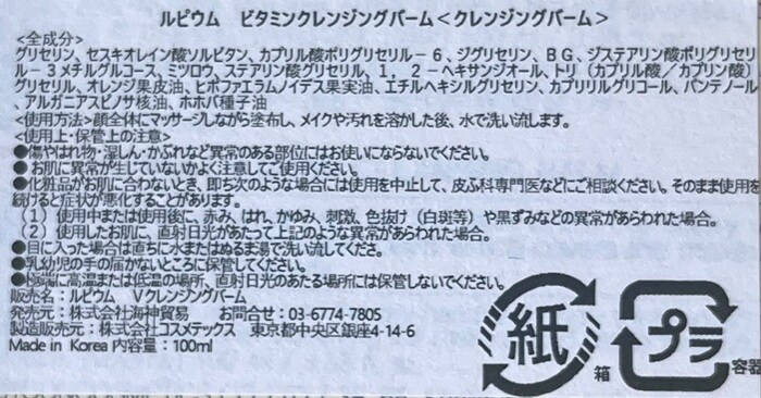 [4個]海神貿易 ルピウム ビタミンクレンジングバーム 100ml | 厚化粧もサッと落とす!ほのかな温もりを感じながらマッサージ効果まで♪