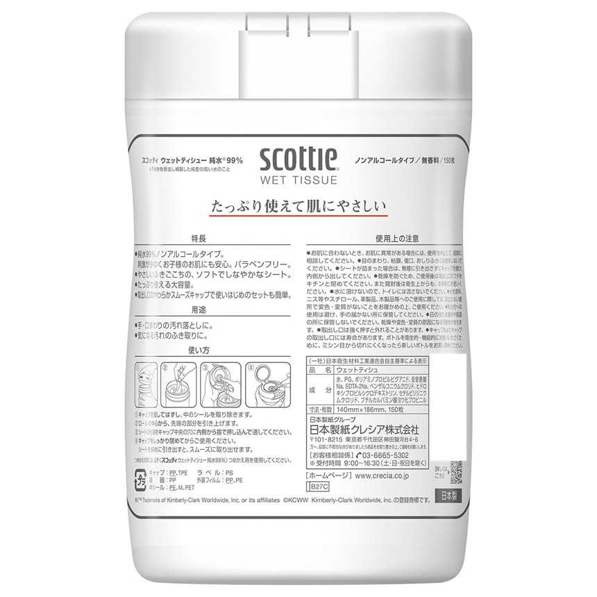 [12個]日本製紙クレシア スコッティ ウェットティシュー 150枚入 | 余分な成分を減らした純水99%のウェットティシュー