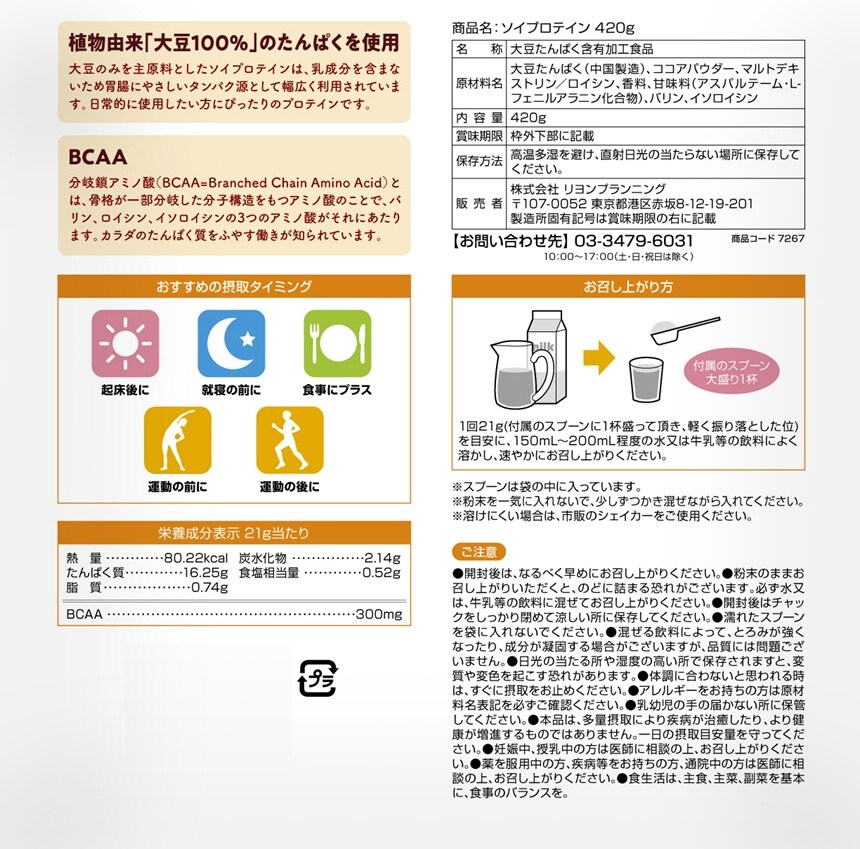 [16個]リヨンプランニング ソイプロテイン 420g | プロテインで健康生活