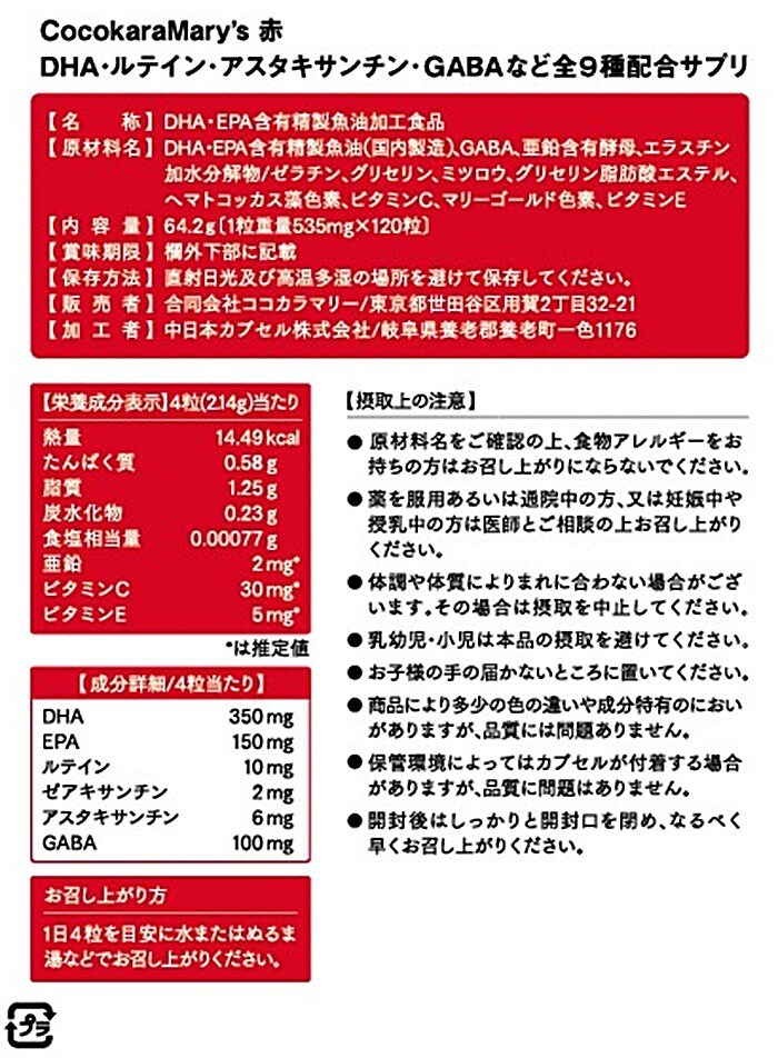 - ココカラマリーズレッド 120粒入(30日分)