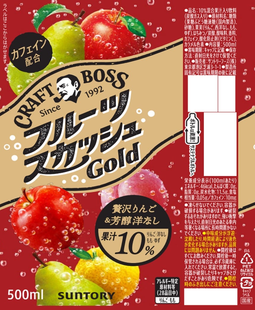 しっかり甘くてすっきり爽快な後味の「クラフトボス フルーツスカッシュGold」です。