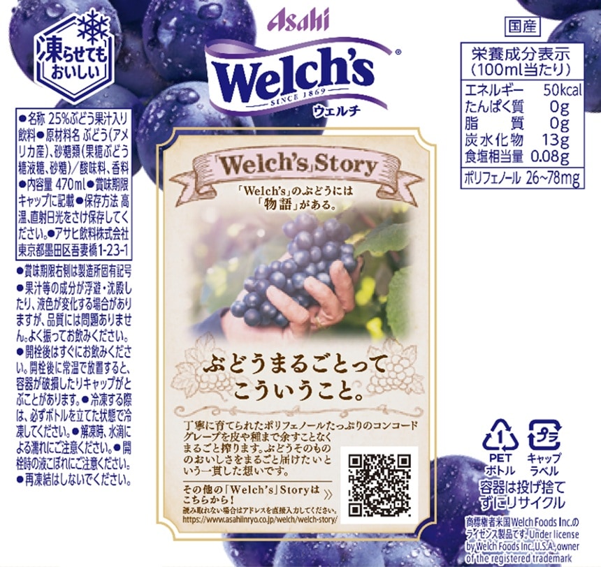 ウェルチならではの果実本来のおいしさが、ぎゅっと1房分詰まったぶどう果汁飲料です。