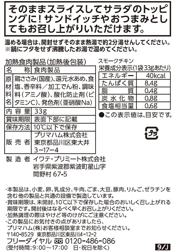 - [冷蔵]プリマハム サラダチキンささみスモークチキン 33g×20個