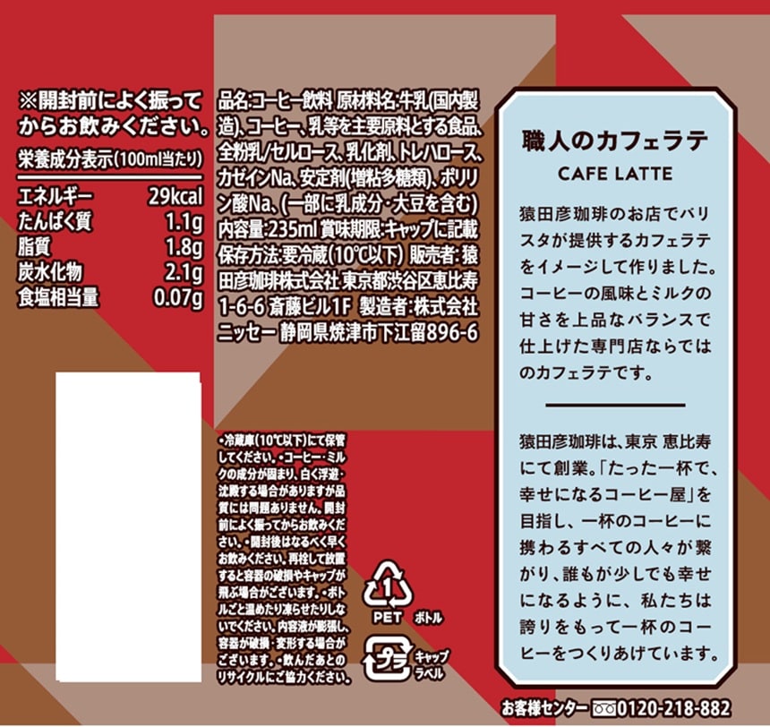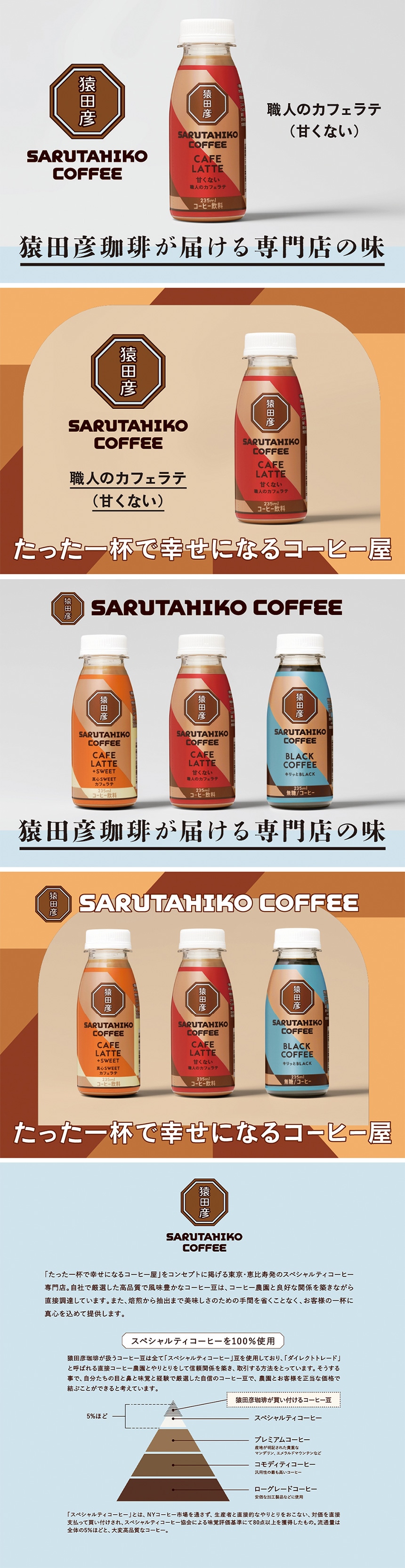 猿田彦珈琲のお店でバリスタが提供するカフェラテに限りなく近い味わい。自社のダイレクトトレードにて調達したコーヒー豆を使用し、ボトル充填後に冷蔵温度帯で管理されるチルドコーヒーならではのフレッシュな風味をどうぞお楽しみください!職人のカフェラテ(甘くない)配合するエチオピア産のコーヒーに、直接買い付けしている「ニグセ・ゲメダ」氏のコーヒーを使用。2020年の品評会において優勝した素晴らしい生産者のコーヒーです。豊かな風味と華やかな香りが特徴。コーヒー感をしっかり味わえることができ、猿田彦珈琲のお店でバリスタが提供するカフェラテを思わせる、満足感の高い一杯です。エチオピア産コーヒー由来の華やかな香りと豊かな風味が特徴です。コーヒーの味わいを深め、ミルクとのバランスを熟考しました。猿田彦珈琲のお店で、バリスタが提供する砂糖不使用のカフェラテを思わせる、満足感の高い一杯です。配合するエチオピア産のコーヒーは、2020 年の品評会で優勝したエチオピアのニグセ・ゲメダ氏のコーヒーを使用しています。よりコーヒーを感じてい ただくためミルクの配合を工夫し、エチオピア産コーヒーの繊細さを引き立 たせました。豊かな風味と上品な余韻が感じられ、猿田彦珈琲のお店でバリスタが提供するカフェラテを思わせる仕上がりを目指しました。香料不使用。※無糖ではありません。