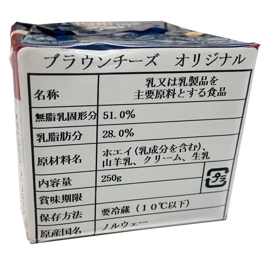 「一度食べたら忘れられない、ブラウンチーズの贅沢感」/「甘さとしょっぱさの絶妙ハーモニー、ブラウンチーズ」「濃厚な甘みがクセになる、ブラウンチーズの奇跡」世界中で愛される独特な風味と豊かなテイストを持つチーズです。特にノルウェーが誇る伝統的なチーズで、そのユニークな味わいは一度食べたら忘れられないと評されます。甘じょっぱい風味が口いっぱいに広がり、虜になります。リピータ続出中。「そのままでも、パンに乗せても。ブラウンチーズの無限の可能性」パンに乗せたり、サンドイッチの具材、デザートのトッピングとしても大変使いやすいです。さらに、キャラメルのような風味があるため、ソースやドレッシング、デザートの材料としても応用が利きます。、フルーツ、ナッツなどと特によく合い、シンプルな素材でも贅沢な味わいに仕上げます。「ノルウェーの秘宝、ブラウンチーズで特別なひととき」他では味わえない、独特な風味・キャラメルのような外観、特別な魅力がつまったユニークな逸品です。料理の幅を広げ、食卓にエレガントな一工夫を加えるために、ぜひブラウンチーズオリジナルを取り入れてみてください。ほどよい塩気が甘さを引き立て、バランスの取れた美味しさを実現しています。