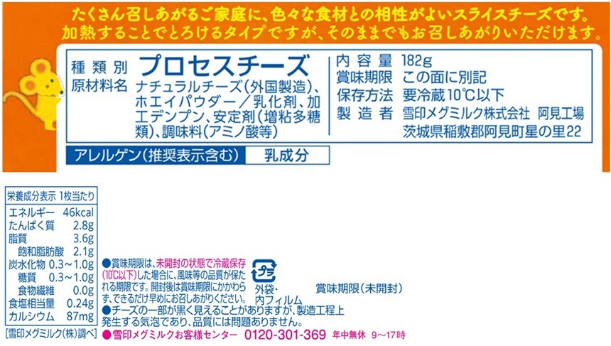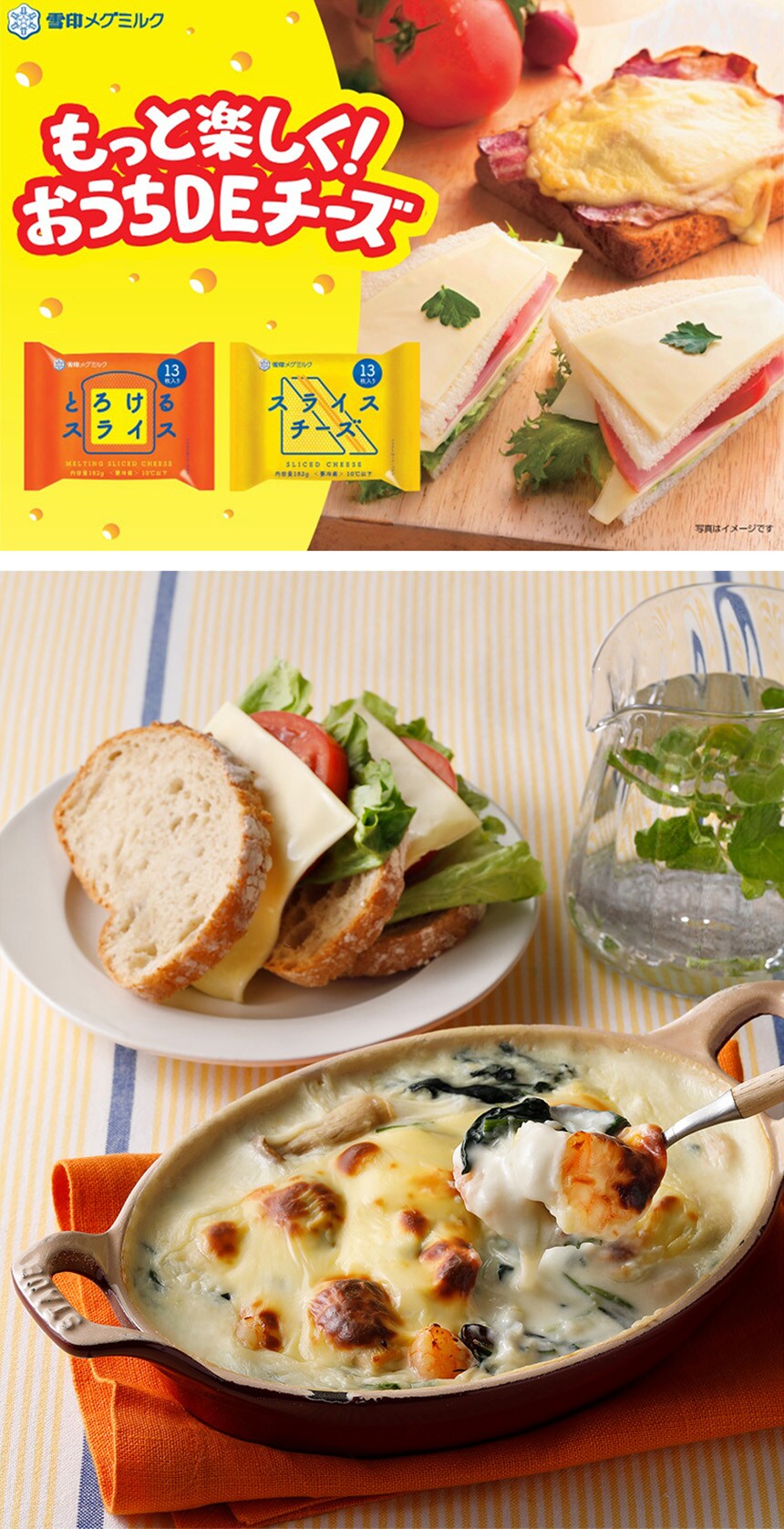 家族みんなで気兼ねなく食べられる、たっぷり13枚入りのとろけるスライスです。トロ~リおいしい!とろけるタイプのスライスチーズです。そのままでも、加熱調理しても使えるスライスチーズ。トーストはもちろん、メインのお料理や副菜だけでなくスイーツ作りにもおすすめです。