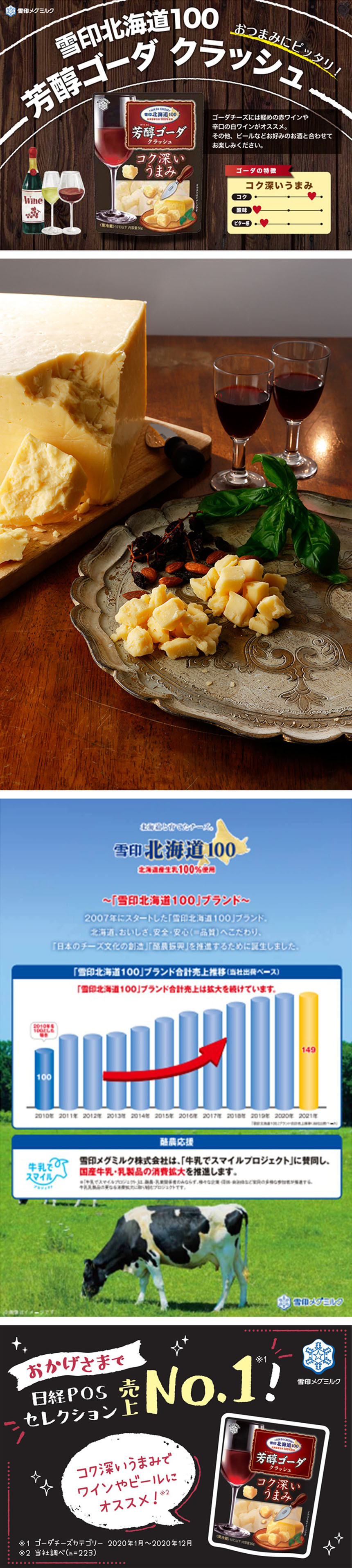 北海道の酪農とチーズづくりの歴史とともに歩んできた雪印メグミルクが、北海道にこだわって、北海道産の生乳を100%使用して創り上げた、日本人の味覚に合ったチーズです。