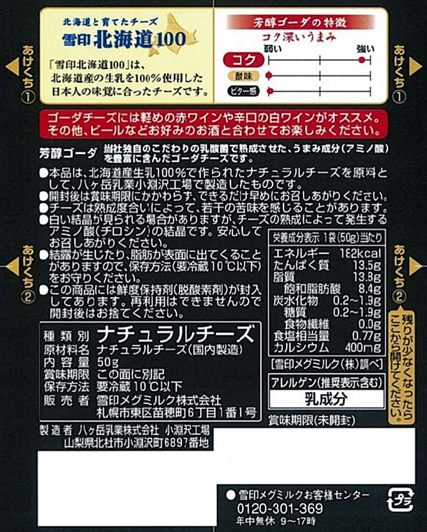 - [冷蔵]雪印北海道100 芳醇ゴーダ クラッシュ 50g×12個