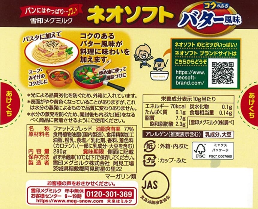 - [冷蔵]雪印 ネオソフト コクのあるバター風味 280g×4個