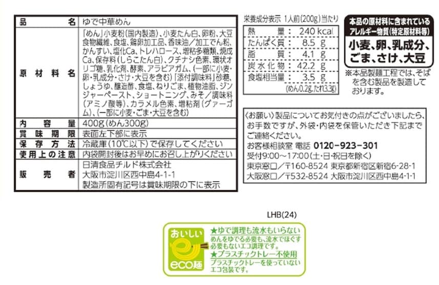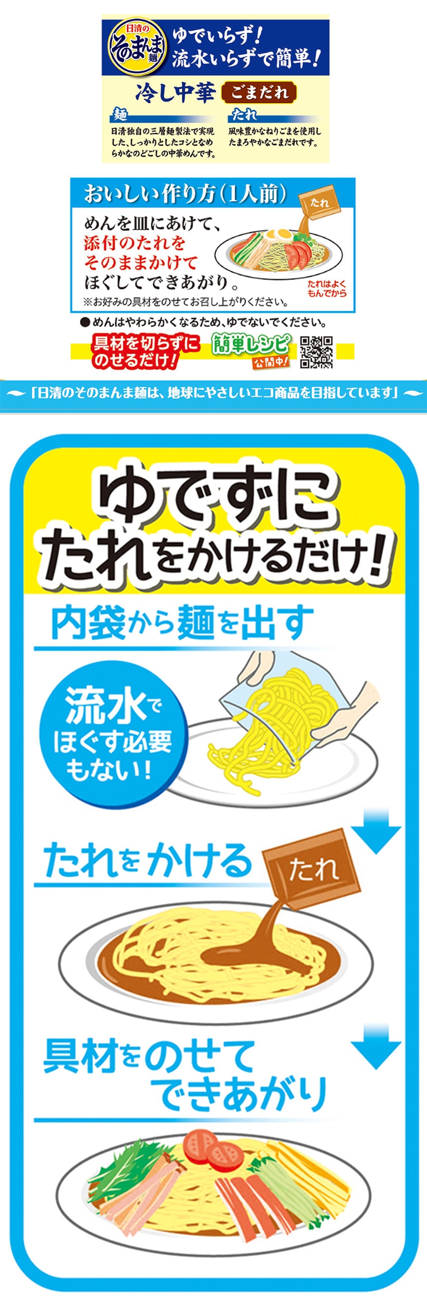 - [冷蔵]日清食品チルド 日清のそのまんま麺 冷し中華 ごまだれ 2人前×6袋