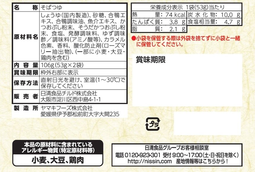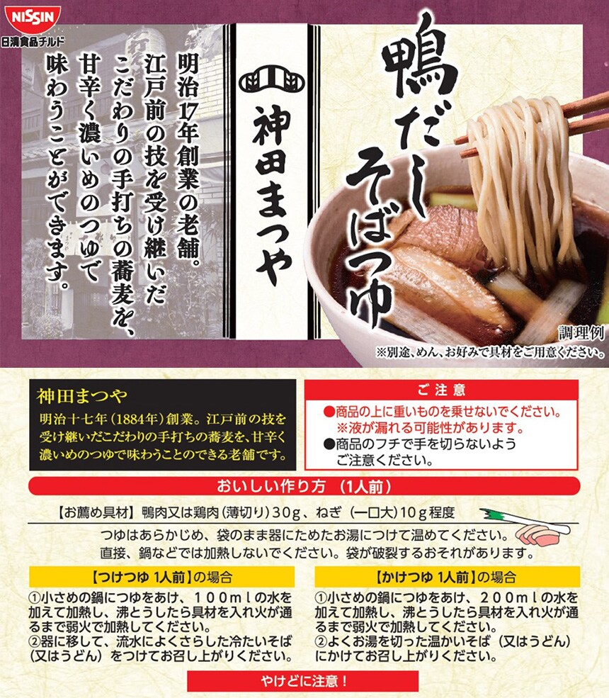 - [冷蔵]日清食品チルド 老舗の逸品 神田まつや監修 鴨だしそばつゆ 2人前×10個