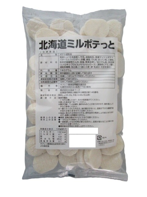[計12000g]ホクレン農業協同組合連合会 北海道ミルポテっと 1kg×12袋 | 北海道産のじゃがいもと牛乳・乳製品を使ったポテトナゲットです。