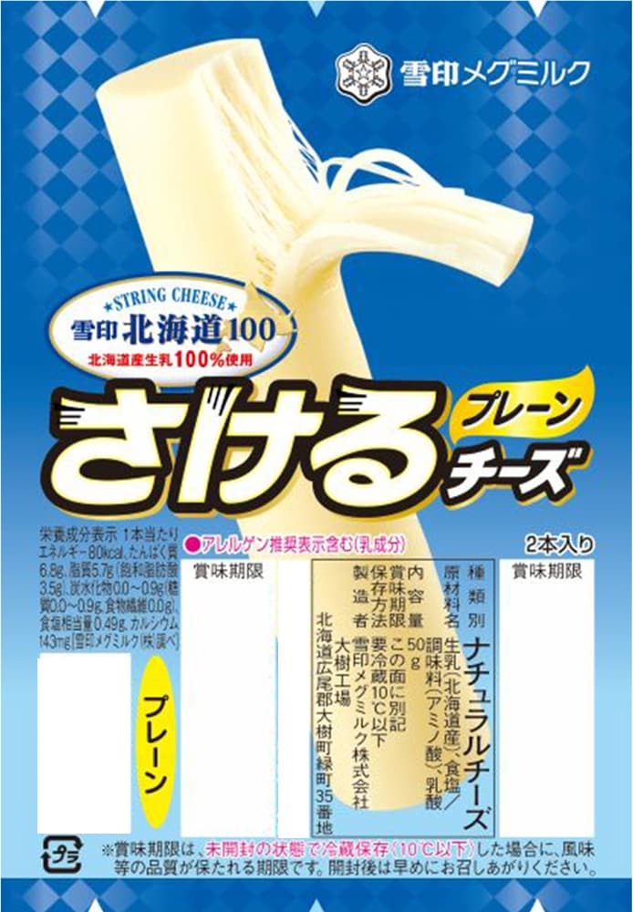 ・雪印北海道100 さけるチーズ(プレーン) 50g×2個