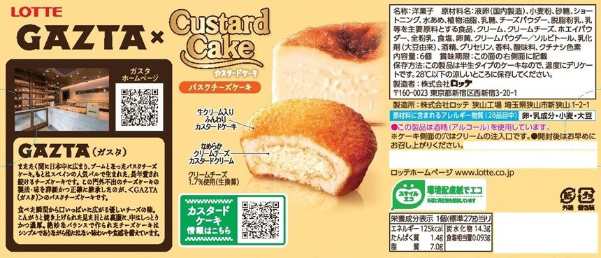 ガスタの看板商品であるバスクチーズケーキの味わいをカスタードケーキで表現しました。