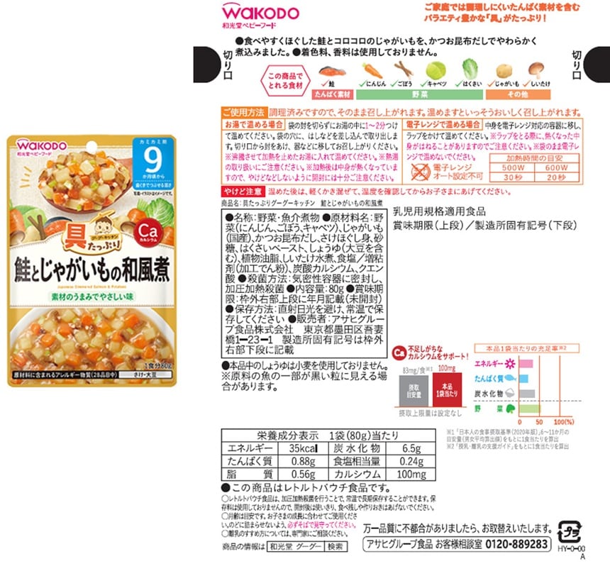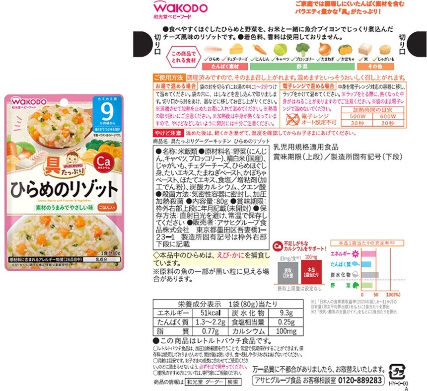また、着色料・香料は使用しておりません。離乳食で不足しがちな鉄もしくはカルシウムを強化しています。