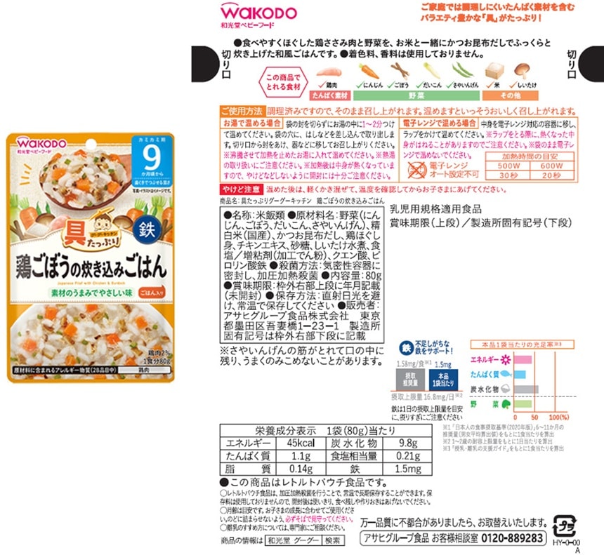 【具たっぷりグーグーキッチン】家庭では調理しにくいたんぱく素材を含む、バラエティ豊かな「具」がたっぷり入ったレトルトパウチタイプのベビーフードバラエティ豊かな「具」がたっぷり!