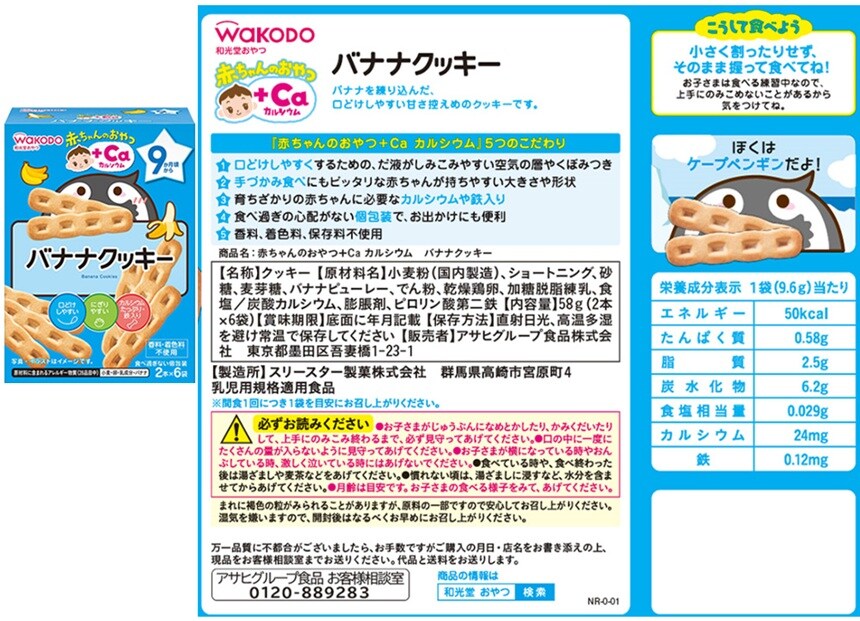 ・赤ちゃんのおやつ+Ca バナナクッキー 58g×1個