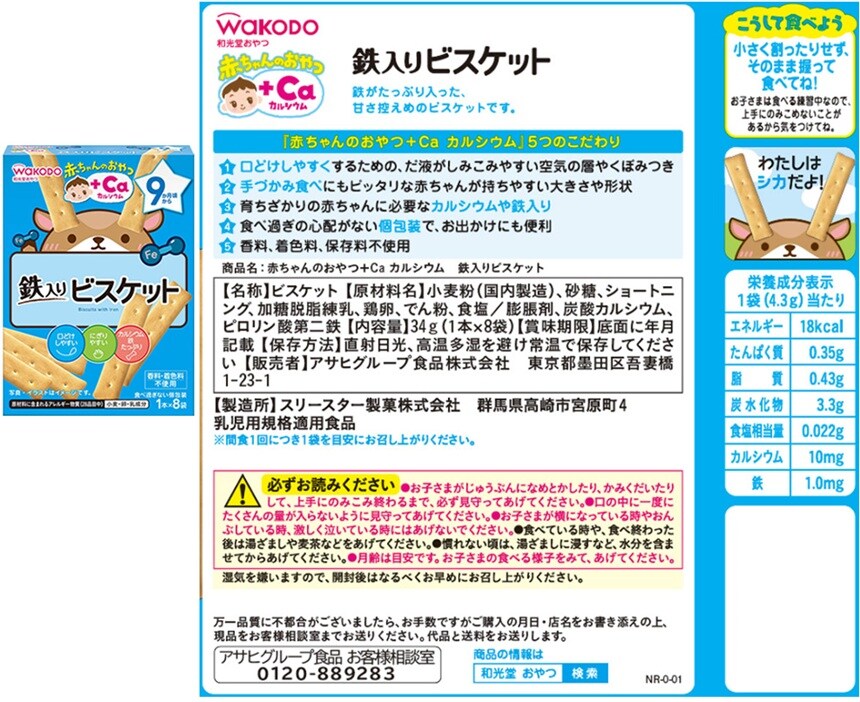安心してあげられる鉄やカルシウム入りのおやつシリーズです。