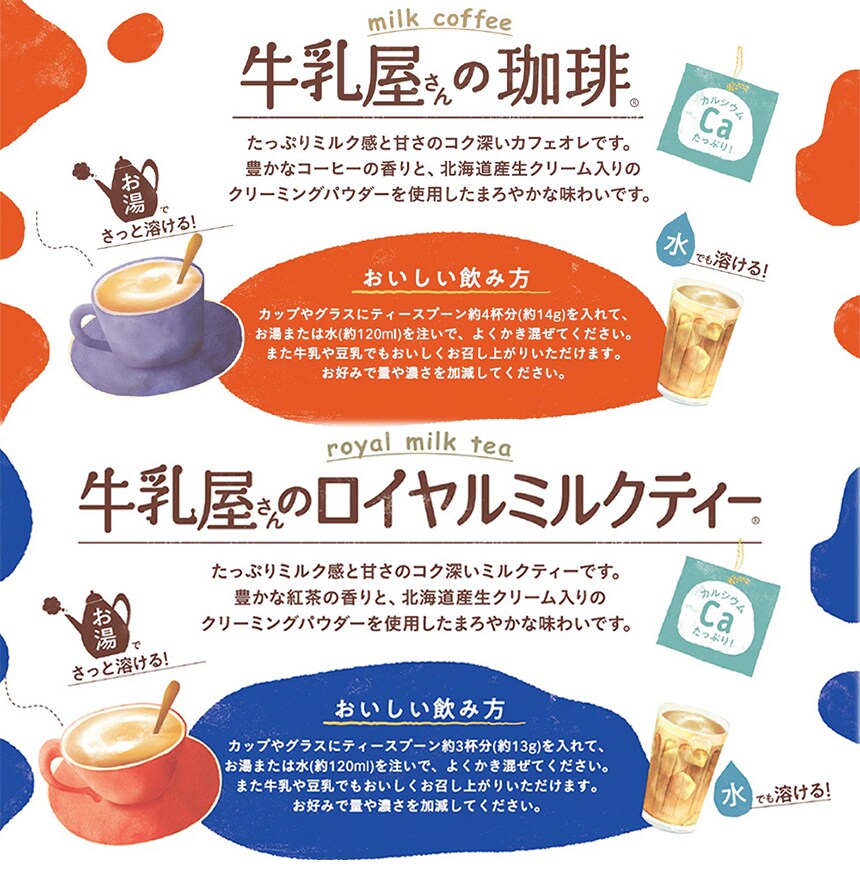 冷たい水にも溶けますので、アイスカフェオレも簡単に作ることができます。カルシウム入りです。北海道産の生クリームを使用しています。