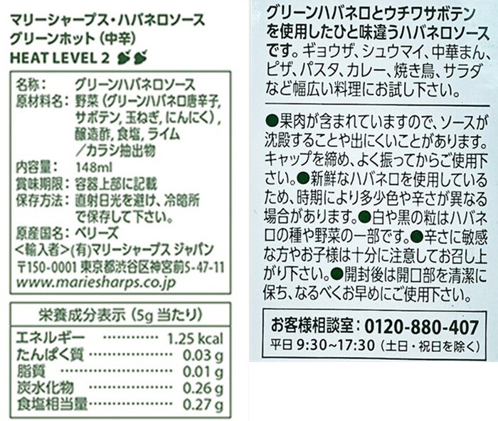 - マリーシャープス・ハバネロソース2種(ホット/グリーン)計2本セット