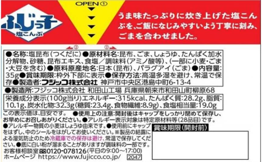 - ・きざみ塩こんぶ ごま入りボトル 35g×1個