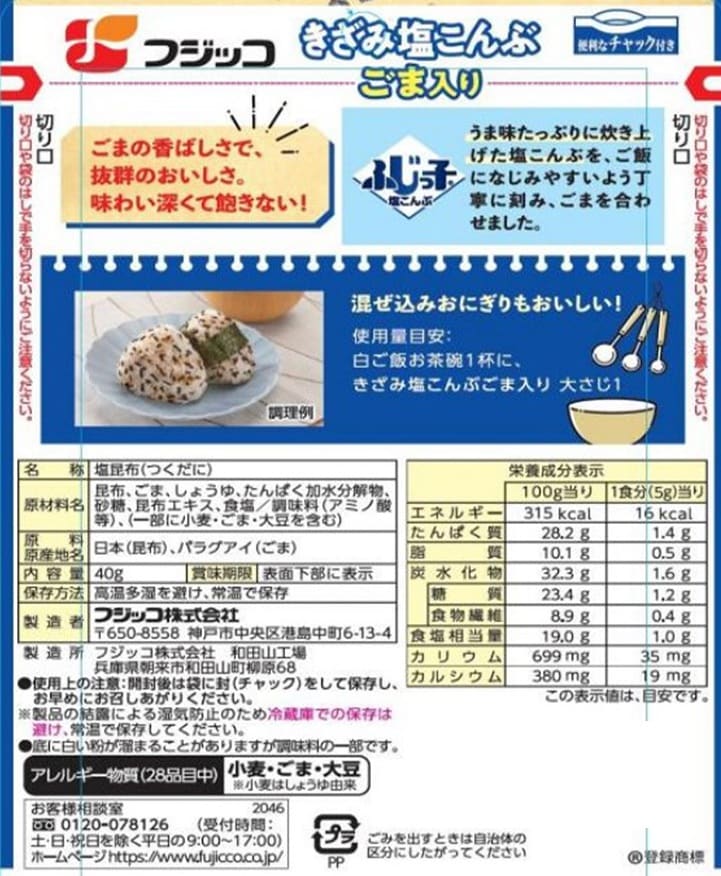 香ばしいごまときざみ塩こんぶのふりかけ。