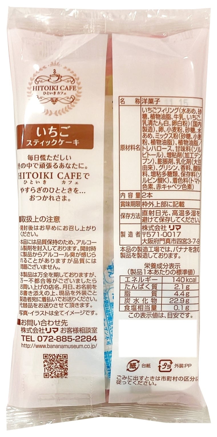 ・HITOIKICAFE いちごスティックケーキ 2本入×3個