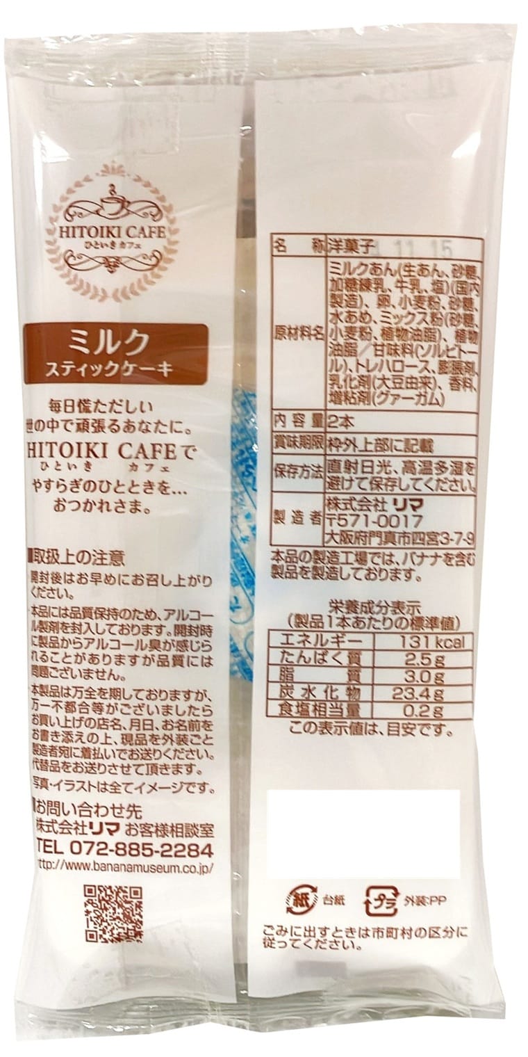 ・HITOIKICAFE ミルクスティックケーキ 2本入×3個