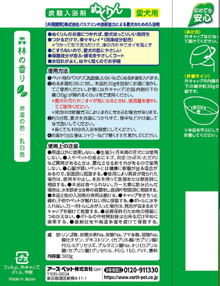 【愛犬用 炭酸入浴剤 ぬくりん 森林の香り】
