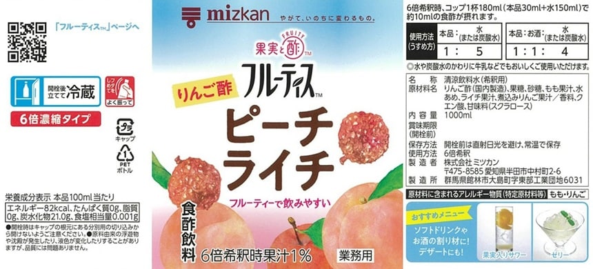 - 業務用フルーティス りんご酢ピーチライチ(6倍濃縮タイプ) 1000ml