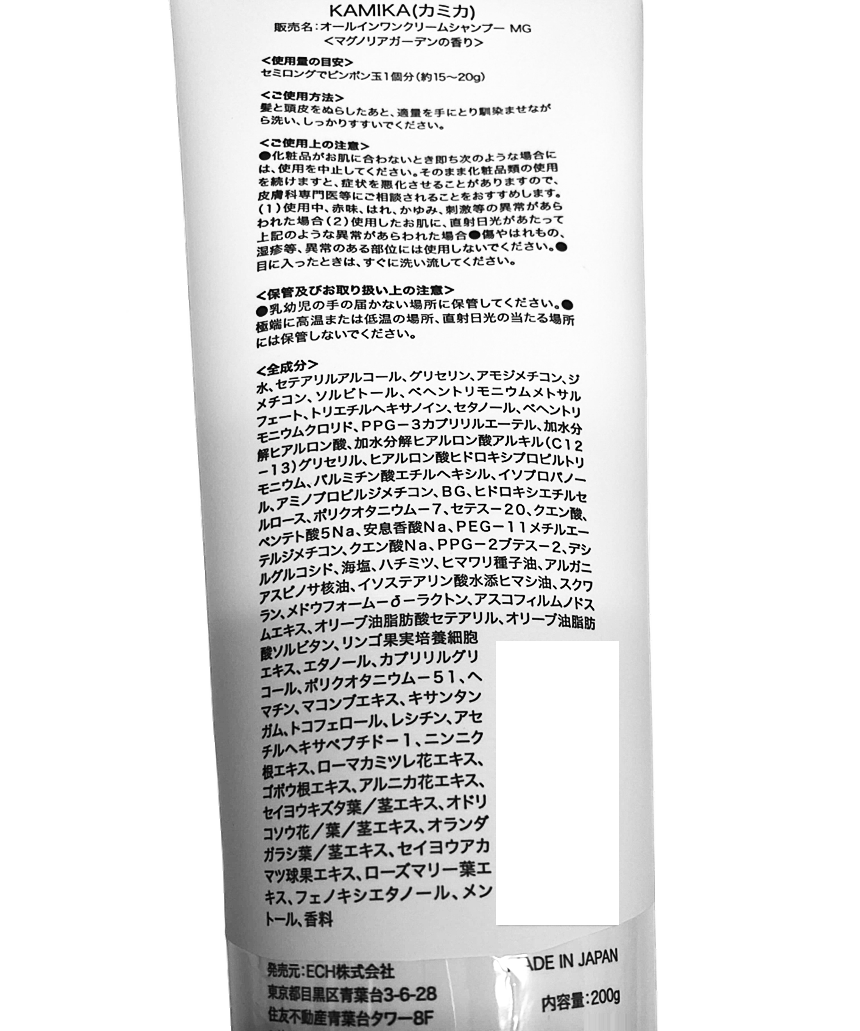 [4個]ECH KAMIKAクリームシャンプーチューブ マグノリアガーデンの香り 200g | 1本でシャンプー、コンディショナー、頭皮ケア、トリートメントの役割を果たすので、時短になります。