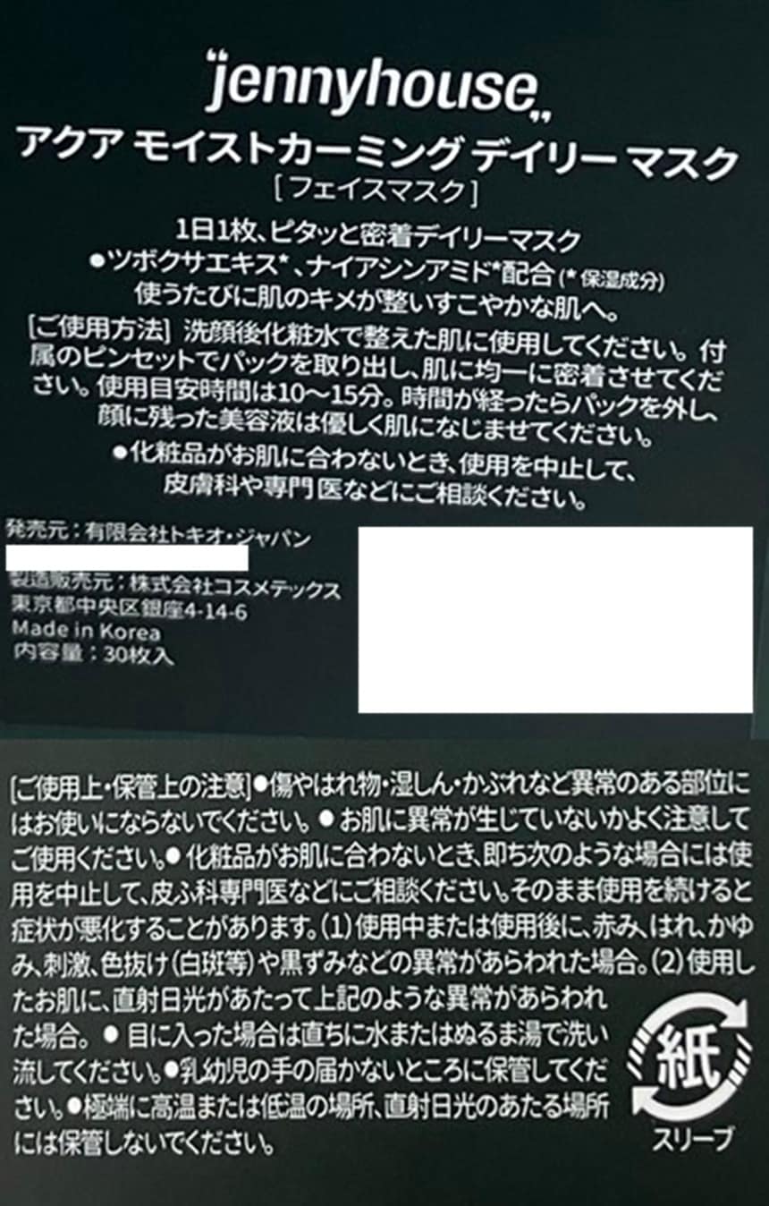 - ジェニーハウス アクア モイスト カーミング デイリー マスク 30枚入