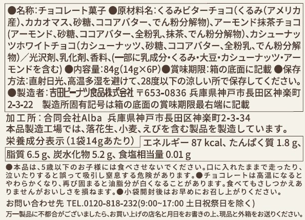 [計24袋]吉田ピーナツ食品 チョコナッツスーベニア 6袋入×4個 | 3種のナッツをくちどけなめらかなチョコレートでコーティング。