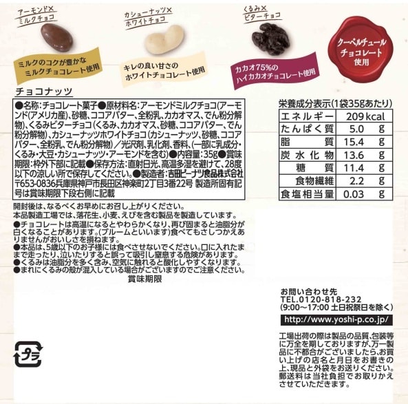 [18個]吉田ピーナツ食品 チョコナッツ 35g | 香ばしくローストしたナッツをチョココーティングしました。