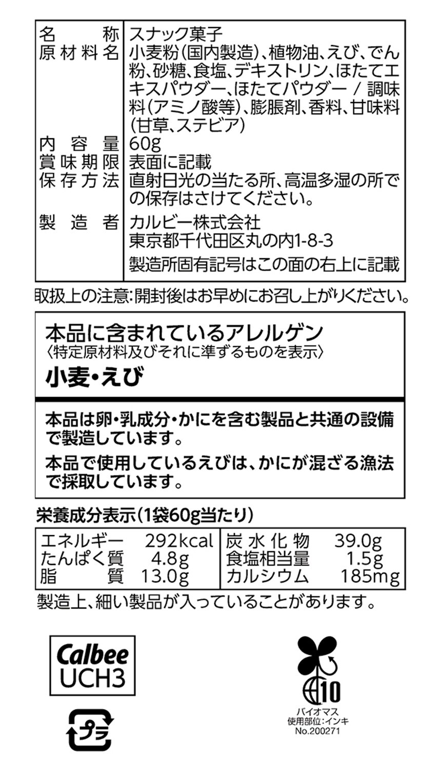 - カルビー 絶品かっぱえびせん 塩と帆立貝柱味 60g