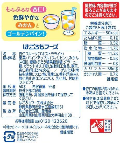 [48袋]はごろもフーズ 朝からフルーツ 杏仁 (パウチ) 95g | 使い切りにちょうど良いもちぷる食感の杏仁