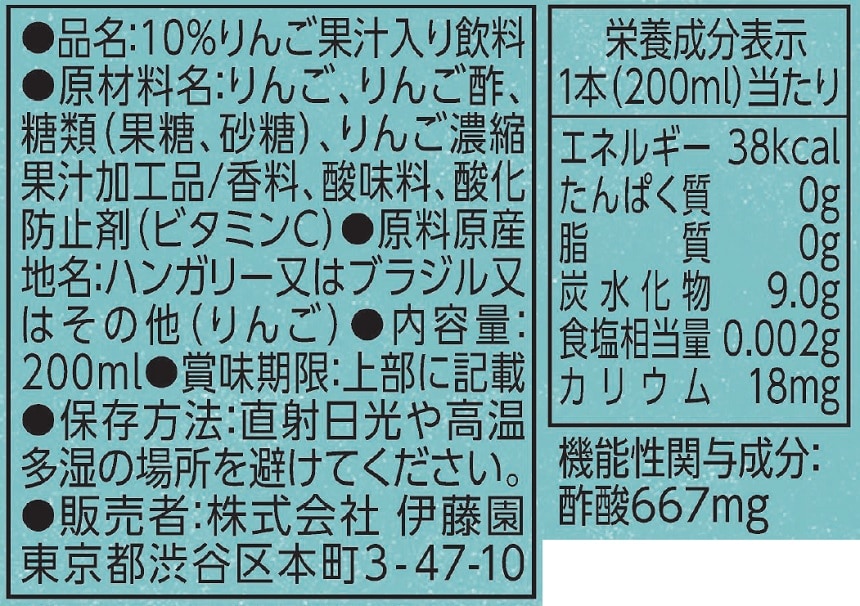 酢酸667mgを含んだ機能性表示食品の「りんごのお酢」です。