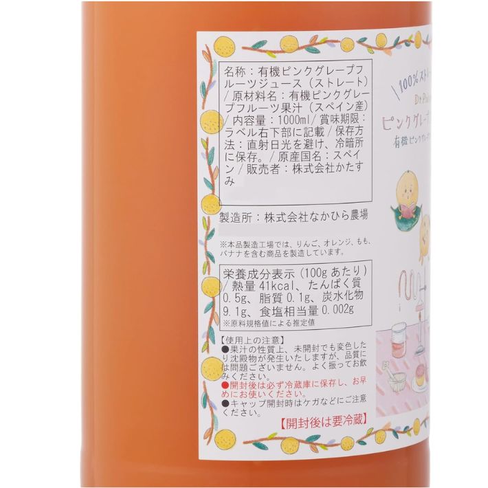 - 有機ピンクグレープフルーツジュース(ストレート) 1000ml