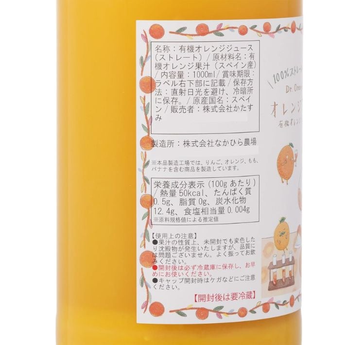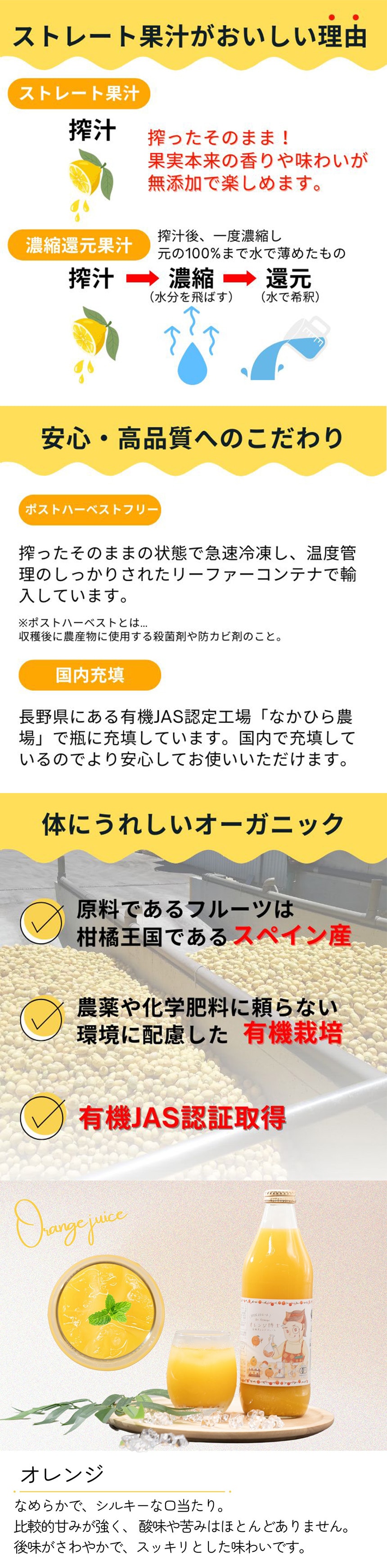 [6本]かたすみ 有機オレンジジュース(ストレート) 1000ml | 有機JAS認定・柑橘王国スペイン産のストレート100%ジュース!