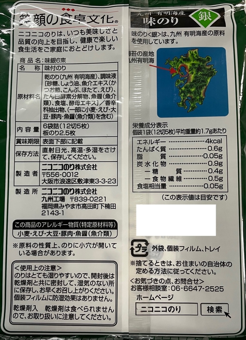 [20個]ニコニコのり 味のり 銀 6袋入 | 海苔の使用原料を「九州有明海産」に限定しました。